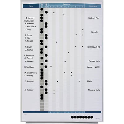 - Keep track of your employees with the Quartet dry erase magnetic In/Out boards