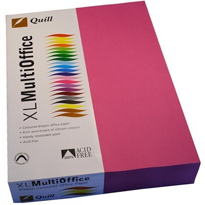 QUILL COVER PAPER 80GSM A4 FLUORO PINK PACK 500