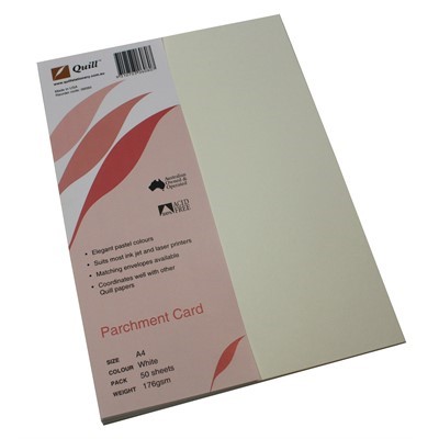 QUILL PARCHMENT CARD 176GSM A4 WHITE PACK 50
