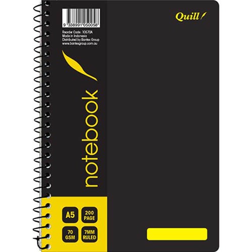 QUILL Q570 NOTEBOOK SPIRALBOUND 70GSM A5 200 PAGE BLACK
