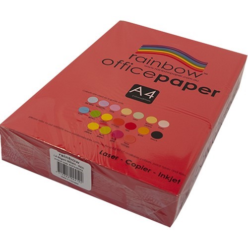 RAINBOW COLOURED A4 COPY PAPER 80GSM 500 SHEETS RED