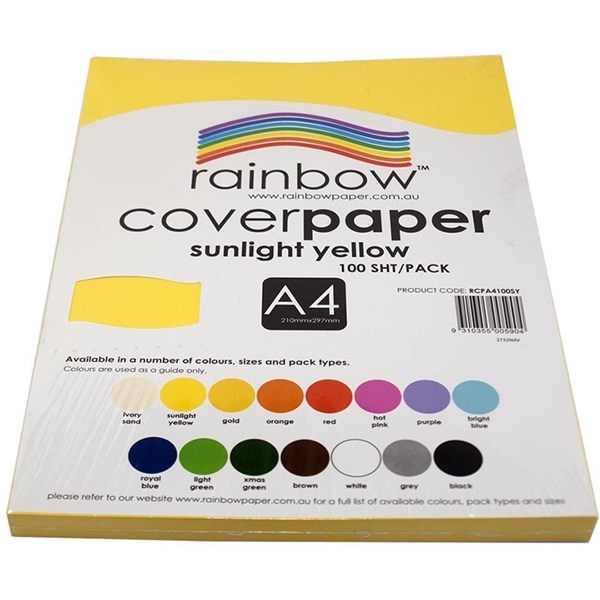 RAINBOW COVER PAPER 125GSM A4 SUNLIGHT YELLOW PACK 100