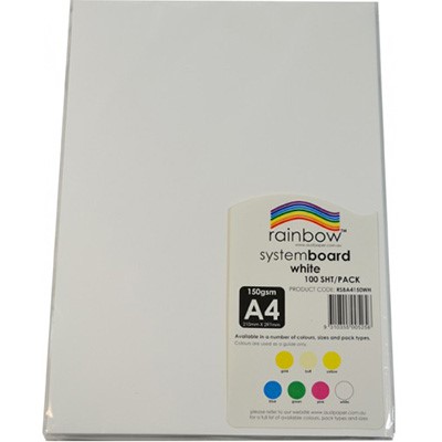 RAINBOW SYSTEM BOARD 150GSM A4 WHITE PACK 100