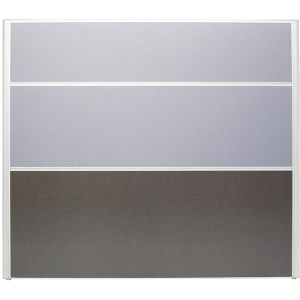 The slimline 30mm deep Rapid Screen is easy to assemble, pinable with fabric upholstery above desk height and charcoal melamine under the desk to minimise wear - Choose 1650mm high for privacy or 1250mm high for greater communication