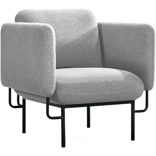 Enhance your reception area with this timeless design. Capri 1 is an armchair with a strong 12mm plywood skeleton and feet and upholstered in Light Grey fabric - Robust Steel Base Finished In Black P/C