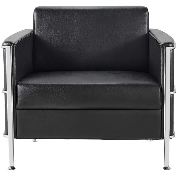 The Eclipse Lounge Range offers a contemporary seating solution with a chrome wrap-around frame and black PU leather upholstery - Designed for comfort and durability, it features adjustable feet for leveling on uneven surfaces and is tested to meet rigorous safety standards