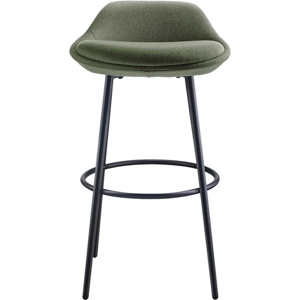 The Eros Bar Stool features a comfortable fabric seat and a robust, powder-coated base with a footrest for added support - Its inviting design and durable construction make it ideal for any breakout space or office kitchen