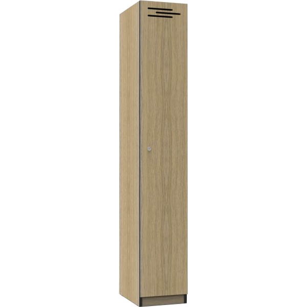 RAPIDLINE MELAMINE LOCKER 1 DOOR 1850 X 305 X 455MM NATURAL OAK/BLACK EDGING