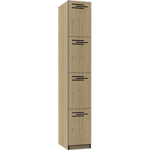 RAPIDLINE MELAMINE LOCKER 4 DOOR 1850 X 305 X 455MM NATURAL OAK/BLACK EDGING