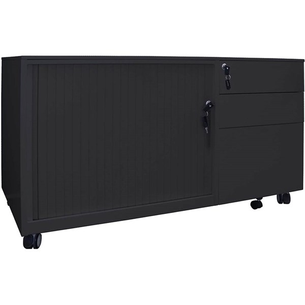The Rapidline Mobile Caddy allows personal storage at the Workstation. Ideal for users with a permanent workstation or Hot Desk users - The unit is fully lockable and has a Flush Front mobile pedestal and a Tambour door section with a centre shelf
