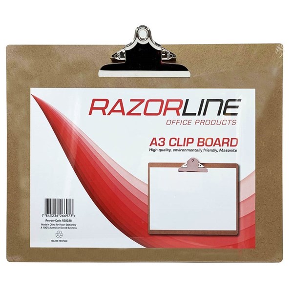 RAZORLINE CLIPBOARD MASONITE LANDSCAPE LARGE CLIP A3 BROWN 250SHEETS