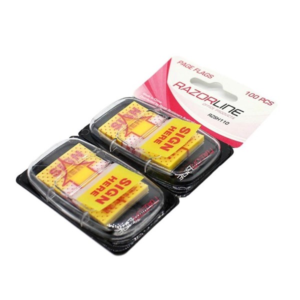 Razorline Sign Here Flags are perfect for use to mark and emphasise areas of important documents which require signatures - They have a strong self-adhesive backing to stay put and then remove easily without leaving any sticky residue