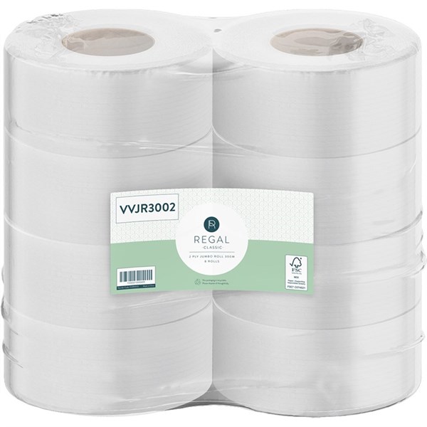 REGAL CLASSIC JUMBO TOILET ROLL 2-PLY 300M PACK 8