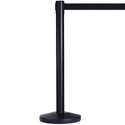 RETRACTA Q Barrier Stand with belt - Black powdercoated steel pole, belt head and base