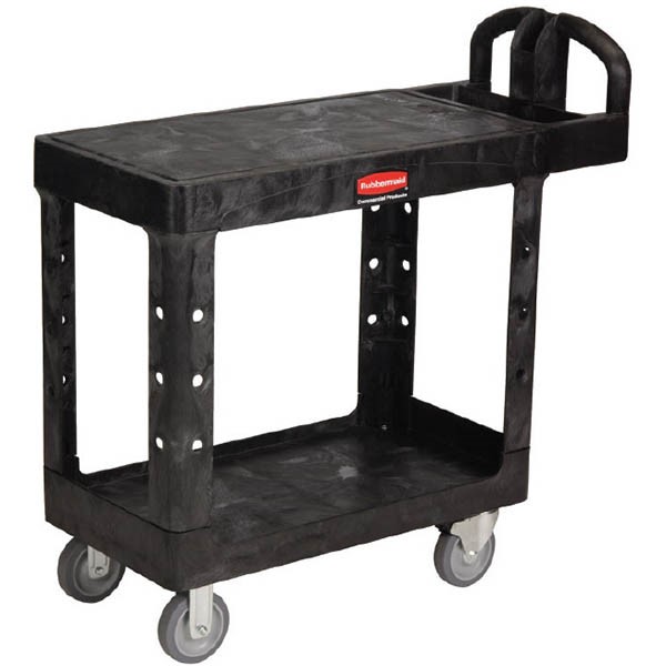 The Rubbermaid Commercial Heavy-Duty Utility Cart with flat shelf is a durable easy to manoeuvre all purpose cart Designed to transport oversized bulk items - Two swivel castors for easy manoeuvrability
