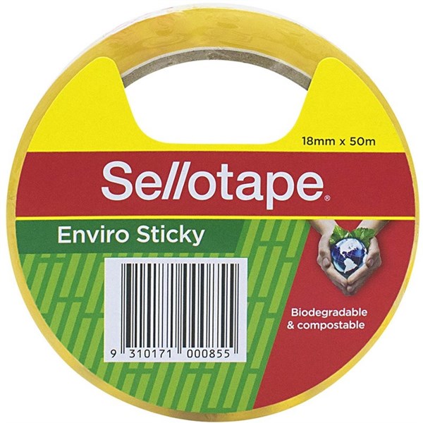 Sellotape Enviro Tape and is a biodegradable tape, non-static and tears easily by hand when required - It goes on clear and is good for sealing, holding, packaging and repairing torn documents