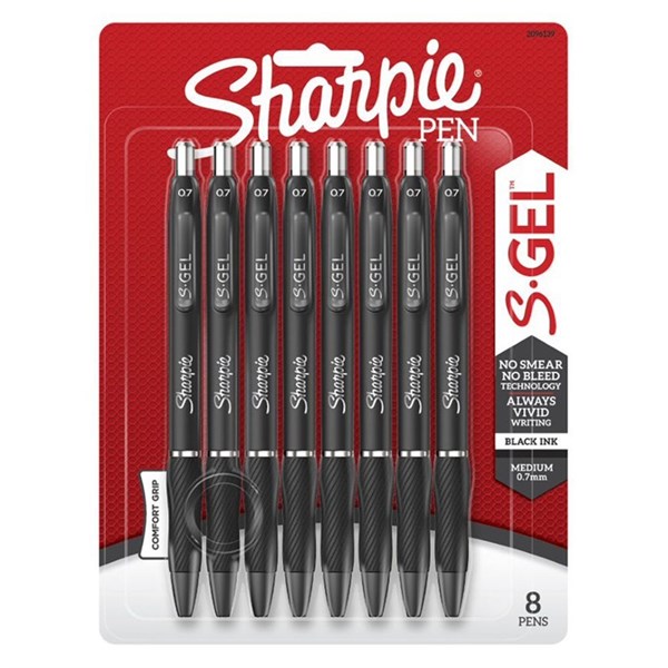 SHARPIE S-GEL RETRACTABLE GEL INK PEN 0.7MM BLACK PACK 8