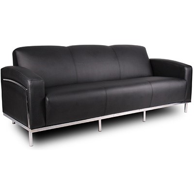 - Three seater lounge with soft curve polyurethane black upholstery and chrome frame
