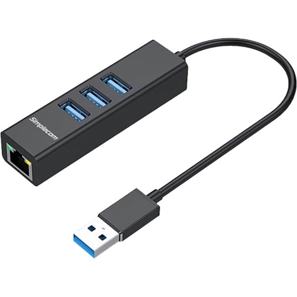 Simplecom CHN420 Aluminium 3 Port SuperSpeed USB HUB with Gigabit Ethernet Adapter - The Simplecom CHN420 is an essential companion for PC or laptop with not enough USB ports or lack of RJ45 Ethernet port, it turn a single SuperSpeed USB port into three USB port and one Gigabit Ethernet port