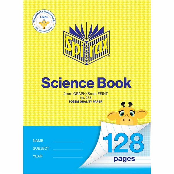 SPIRAX 233 SCIENCE BOOK 2MM A4 128 PAGES GRAPH AND FEINT