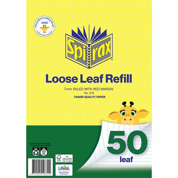SPIRAX 274 LOOSE REFILL A4 7MM 50 LEAF