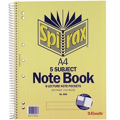 SPIRAX 596 5-SUBJECT NOTEBOOK 7MM RULED SPIRAL BOUND 250 PAGE A4