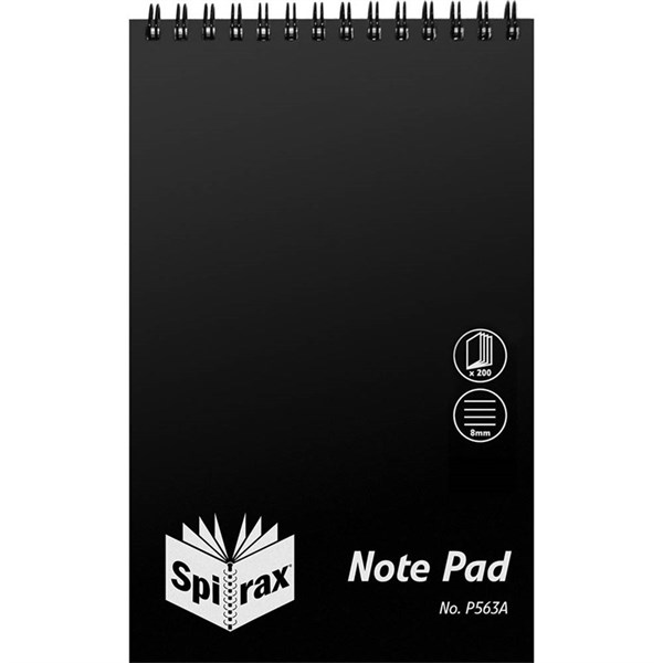 SPIRAX P563A REPORTERS NOTEBOOK 8MM RULED TOP OPEN 200 X 127MM 200 PAGE BLACK