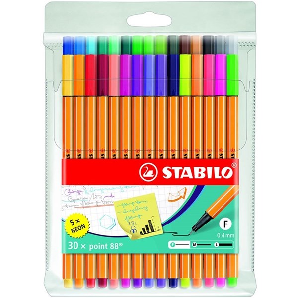 STABILO 88 POINT FINELINER PEN 0.4MM ASSORTED WALLET 30