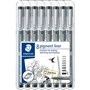 STAEDTLER 308 PIGMENT LINER ASSORTED NIBS BLACK PACK 8
