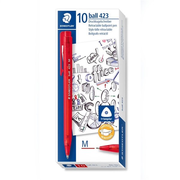STAEDTLER 423 STICK ICE TRIANGULAR RETRACTABLE BALLPOINT PEN MEDIUM RED BOX 10