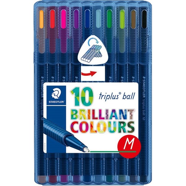 STAEDTLER 437 TRIPLUS BALLPOINT PEN MEDIUM ASSORTED PACK 10