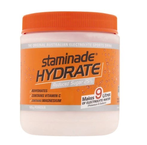 TThe original Australian electrolyte sports drink. 25% less sugar*. *Staminade Hydrate Orange contains 25% less sugar than other Staminade variants
