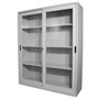 STEELCO GLASS SLIDING DOOR CUPBOARD 3 SHELVES 1830 X 1500 X 465MM SILVER GREY