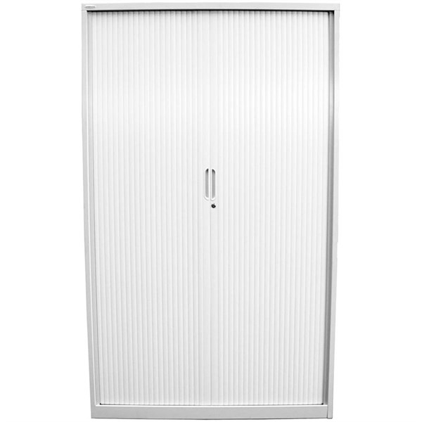 STEELCO TAMBOUR DOOR CABINET 3 SHELVES 1200H X 1200W X 463D MM WHITE SATIN