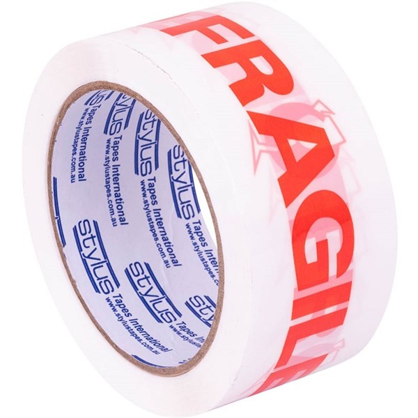 Stylus Fragile Packaging Tape comes pre-printed with red text on a white background so you can easily mark goods, packages or boxes which require special handling and loading - Economy grade printed message tape suitable for light weight day to day applications