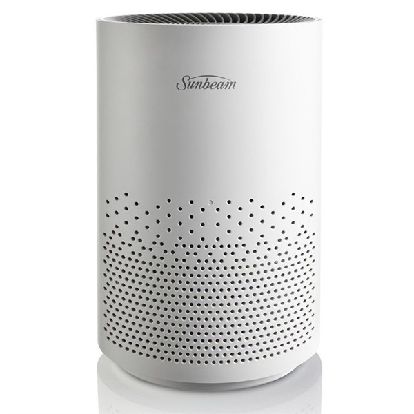 - The air purifier uses Sunbeam's True HEPA Filter which effectively removes 99.97percent of allergens and fine particles such as dust, pollen, pet dander and mould sporesYou can also select your fan speed and set your timer, as well as activating the optional ioniser through an intuitive LED touch screen control panel, effectively eliminating airbourne pollutants. The air purifier uses Sunbeam's True HEPA Filter which effectively removes 99.97% of allergens and fine particles such as dust, pollen, pet dander and mould spores.You can use the air purifier in your bedroom, living room, home office or dining room. With a quite mode on the lowest fan speed, you can use it throughout the night without disturbing your sleep.
