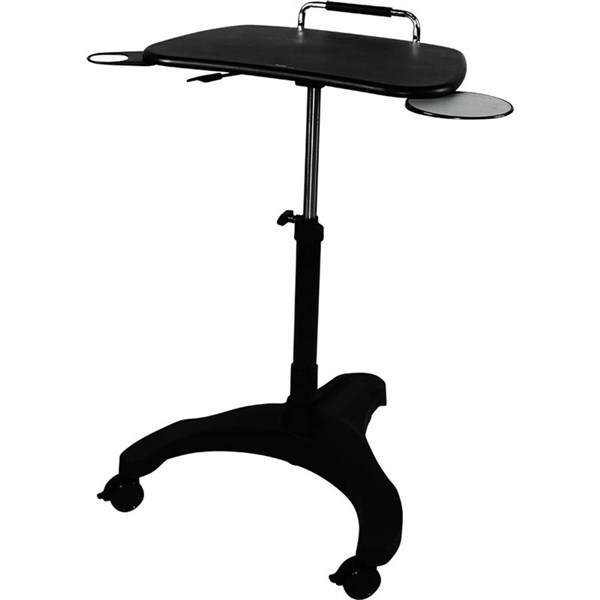 The UPANATOM mobile laptop Sit Stand desk is a compact economical manual solution - Single lever gas assist height adjustable polypropylene platform is large enough to suit a 17 inch laptop