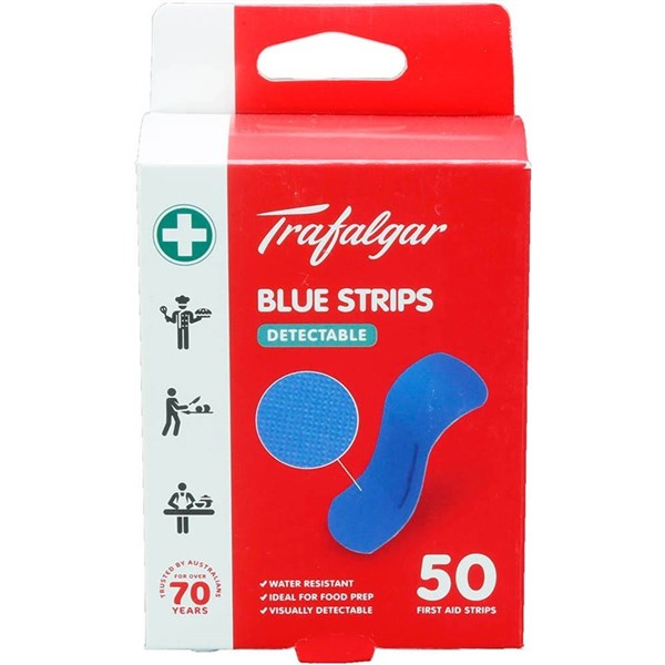 The Blue Adhesive Strips are detectable both visually and electromagnetically, while they are recommended for manufacturing and restaurant industries they are the also suitable for the everyday use - Comes in a box of 50 adhesive strips, offers extra wide 25mm coverage and protective cushion to help heal faster