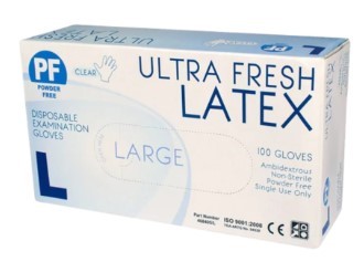 ULTRA FRESH LATEX POWDER FREE GLOVES LARGE CLEAR BX100