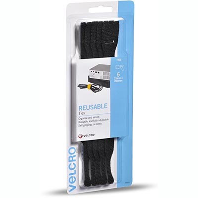 VELCRO BRAND ONE-WRAP REUSABLE TIES 25 X 200MM BLACK PACK 5