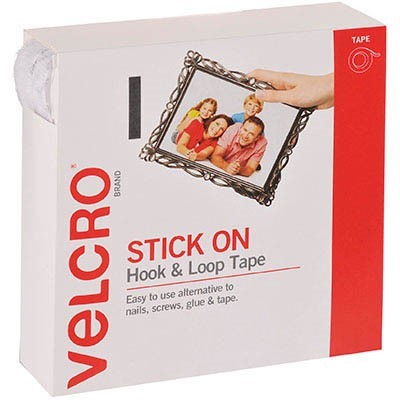 VELCRO BRAND STICK-ON HOOK AND LOOP TAPE 20MM X 5M WHITE