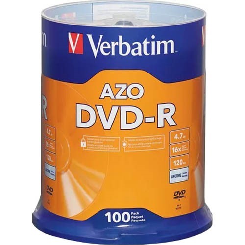 Verbatim DVD-R offer 4.7GB or 120 Minutes of write-once storage capacity, superior recording quality, and compatibility with 1X to 16X DVD-R writers, allowing users to record a complete 4.7GB/120Min disc in approximately 5 minutes - Recognized as the choice of professional users, Verbatim DVD-R offers the optimal AZO recording dye, which provides the highest level of read/write performance, reliability, and archival life