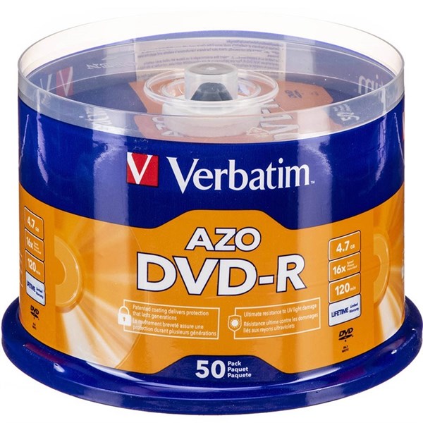 Verbatim DVD-R offer 4.7GB or 120 Minutes of write-once storage capacity, superior recording quality, and compatibility with 1X to 16X DVD-R writers, allowing users to record a complete 4.7GB/120Min disc in approximately 5 minutes - Recognized as the choice of professional users, Verbatim DVD-R offers the optimal AZO recording dye, which provides the highest level of read/write performance, reliability, and archival life