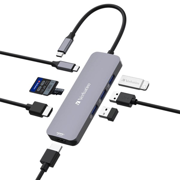 The Verbatim USB-C Pro 8-Port Multiport hub features eight versatile ports connected via a single USB-C connection - The dual HDMI output enables connection to multiple monitors for an expanded workspace whilst the three USB-A ports can be used for many other essential desktop accessories