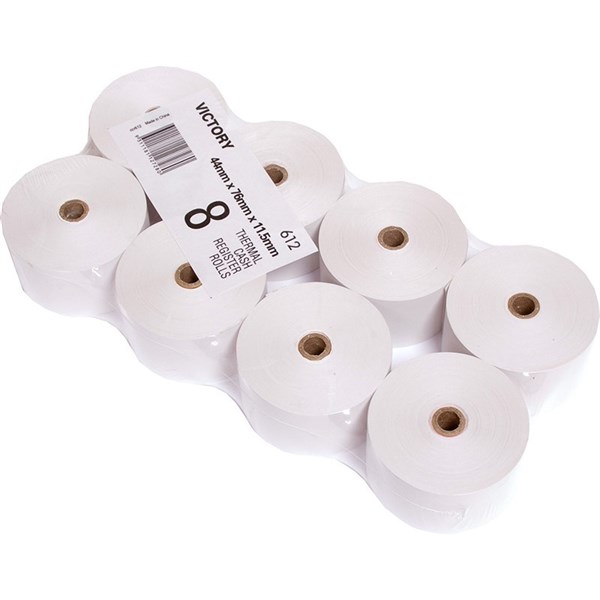 VICTORY 612 CASH REGISTER ROLL THERMAL 44 X 76 X 11.5MM PACK 8
