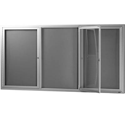 VISIONCHART BE NOTICED NOTICE CASE 3 HINGED DOOR 1830 X 915MM SILVER FRAME GREY BACKING