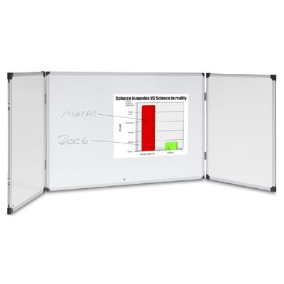 Space-saver whiteboard, hinged doors with double sided whiteboard panels - Magnetic surface on inside, non-magnetic surface on outside