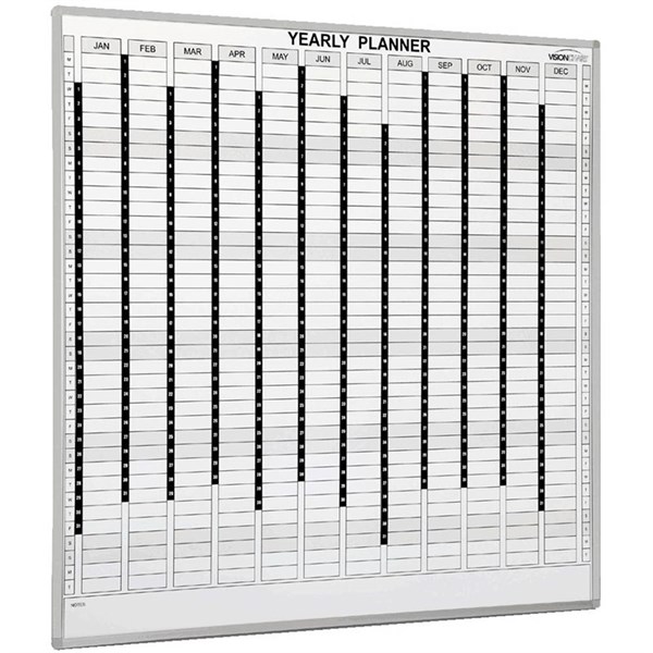 Visionchart perpetual magnetic yearly planner whiteboard.. Use year after year! - Laminated graphic surface with permanent lines on a commercial quality magnetic whiteboard with an aluminium frame with rounded corners