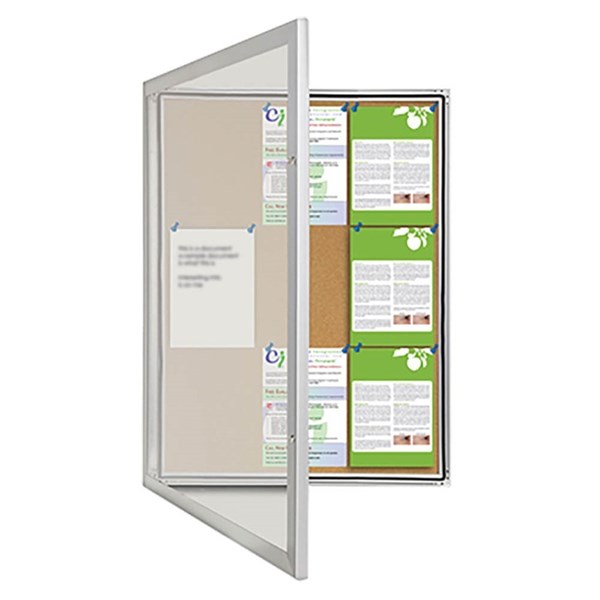 VISIONCHART TX WEATHER RESISTANT NOTICE CASE 1350 X 980MM SILVER FRAME CORK BACKGROUND