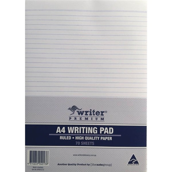 WRITER PREMIUM BOND PAD RULED 2 SIDES 70GSM 70 SHEET A4 WHITE
